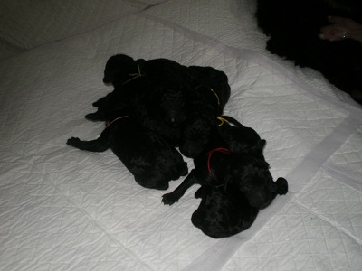Naše štěňátka dnes slaví své první narozeniny-vše nejlepší Aaronkovi,Sašenkovi,Aurískovi,Amilly,Adince a naší Lízince přeje jejich Ivona.